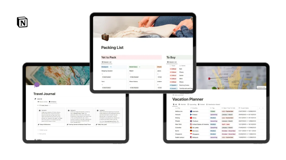 Get access to our free Notion travel templates that will help travel content creators plan like you and your audience to plan the next trips.